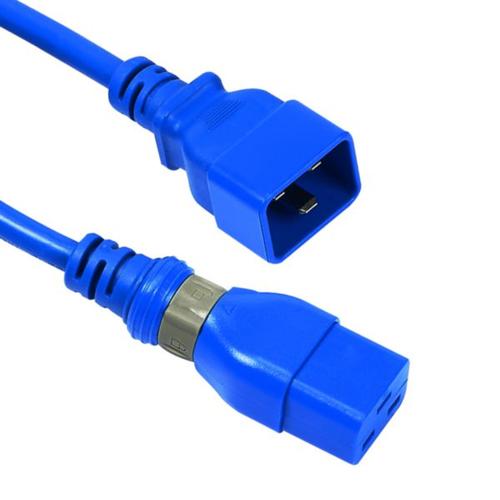 Cabos de alimentação para conexão de equipamentos ativos (servidor) a PDU. O mecanismo rotativo exclusivo no plugue C19, compatível com entradas C20 padrão, evita desligamento acidental. Cabo azul 1,5m, 16A 250V, condutor 1,5mm².