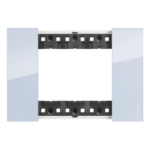 A Tampa Living Now É O Acessório Que, Juntamente Com As Tampas, É Montado Na Parte Funcional Para A Finalização Estética Do Switch. Esta Tampa De 3 Módulos Tem Acabamento Sky Sobre Base Plástica.